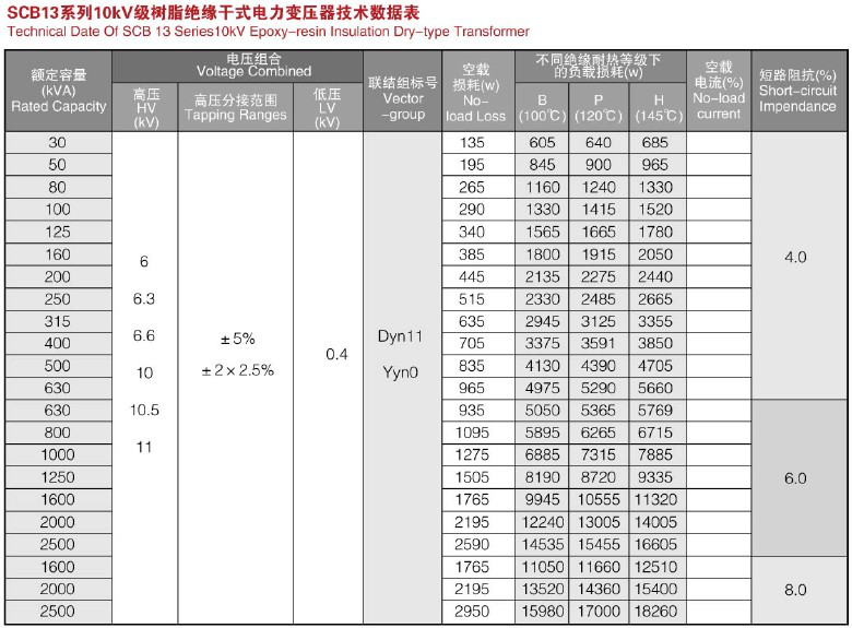 SCB10、SCB11、SCB13系列樹脂絕緣干式電力變壓器布局特性