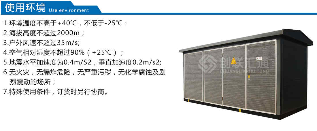箱體部分采用目前內領先技術及工藝,外殼一般采用鍍鋁鋅鋼板,框架采用標準集裝箱材料及制作工藝,有良好的防腐性能,保證20年不銹蝕,內封板采用鋁合金扣板,夾層采用防火保溫材料,箱體內安裝空調及除濕裝置,設備運行不受自然氣候環境及外界污染影響,可保證在-40℃~+40℃的惡劣環境下正常運行。箱體內一次設備采用全封閉高壓開關柜(如:xgn型)、干式變壓器、干式互感器、真空斷路器,彈簧操作機構、旋轉隔離開關等內技術領先設備,產品無裸露帶電部分,為全封閉、全絕緣結構,完全能達到零觸電事故,全站可實現無油化運行,安全性高,二次采用微機綜合自動化系統,可實現無人值守。