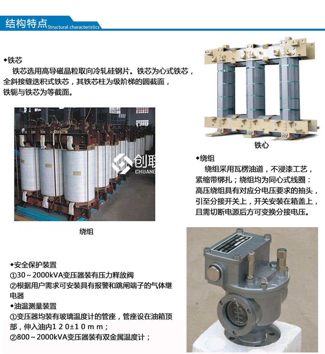 變壓器主要由鐵芯、繞組、油箱、油枕、絕緣套管、分接開關和氣體繼電器等組成。